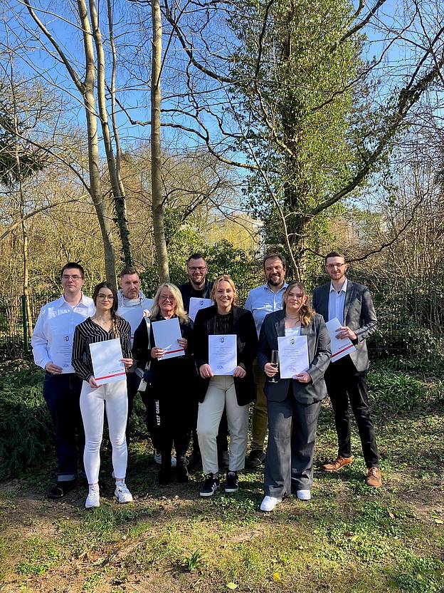 Ein herzlicher Glückwunsch geht auch raus an die acht Absolvent*innen des Kurses PFK E-22-04 in Eutin (auf dem Foto mit Kursleitung Christoph Dose).